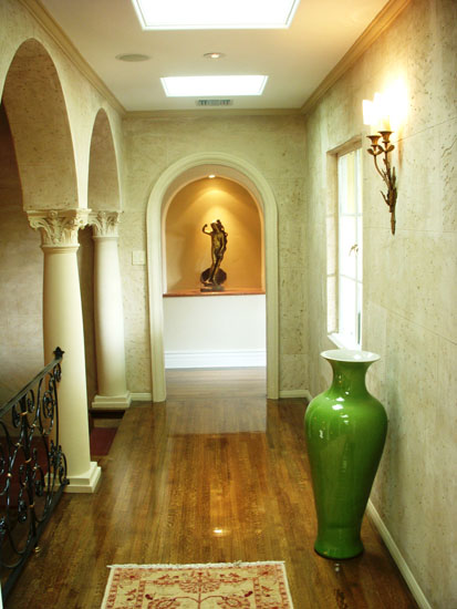 A new two-story, six-car garage was added at the rear of the property with a two bedroom guest suite above.