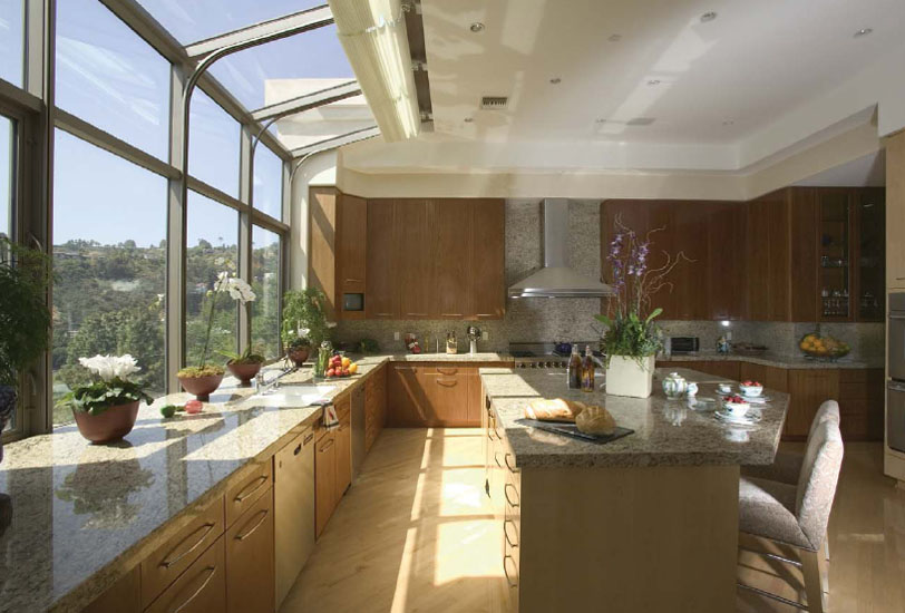 At the end of Oriole Way, half way up the hill overlooking the famous Sunset Strip and Doheny Drive, sits an incredible mesa with a 280 degree view from downtown LA to the Getty Center. This magnifi cent home was designed by architect Marsha Scully, AIA and built for Interior Designer Eric Mitchell Shore.